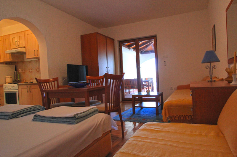 - living room / bedroom is with a French double bed and two Sofa beds
