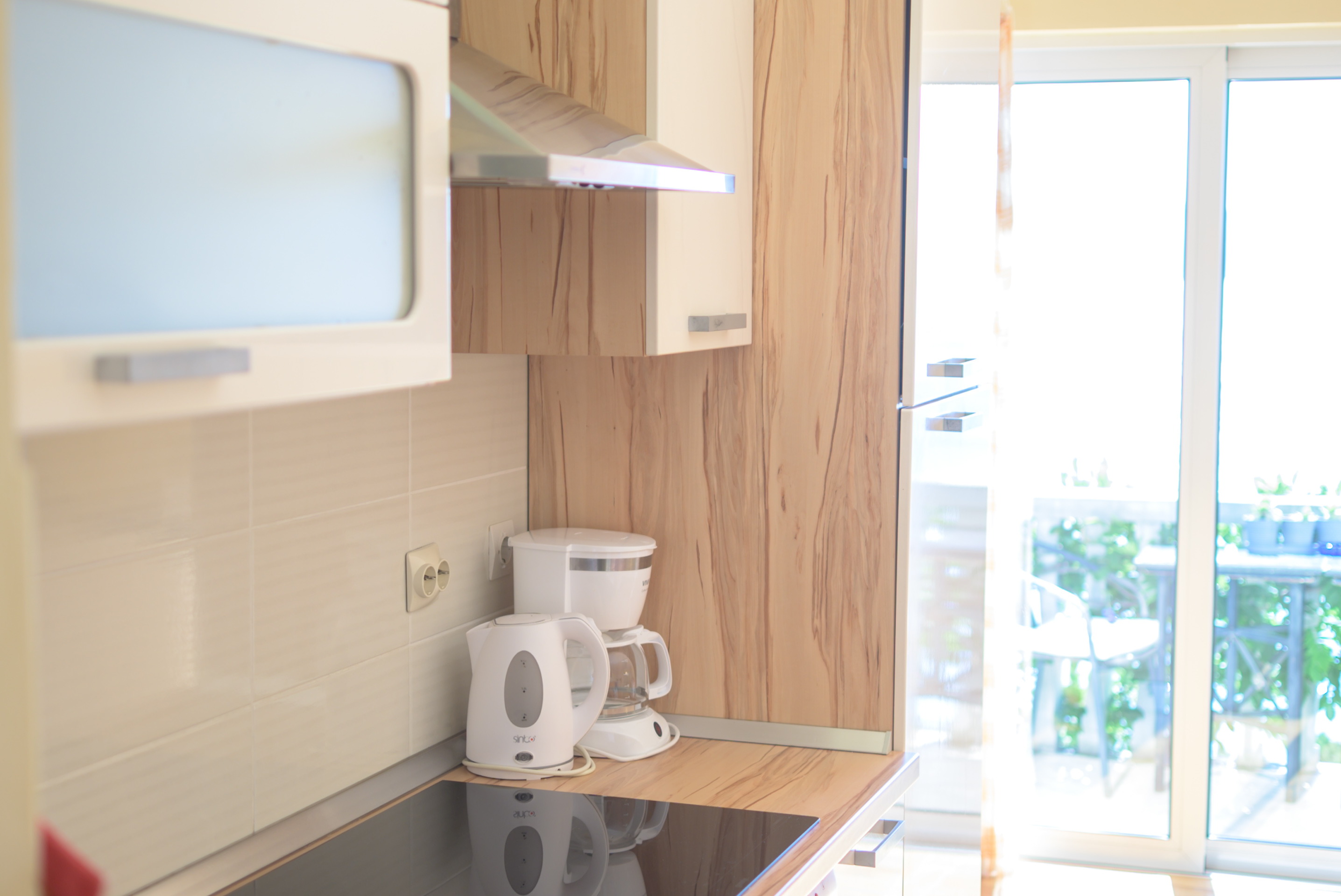 - eine offene Küche mit Wohnzimmer mit Schlafcouch für 2 Personen